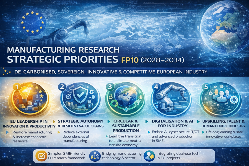 Evropska proizvodnja in raziskave na področju proizvodnje so strateški steber prihodnosti EU. Naslednje finančno obdobje mora jasno podpreti tehnološko suverenost, trajnost, digitalno preobrazbo in razvoj znanj. Le s tesnim sodelovanjem industrije, raziskovalnih organizacij in oblikovalcev politik lahko Evropa ohrani in okrepi svojo vlogo globalnega industrijskega voditelja.