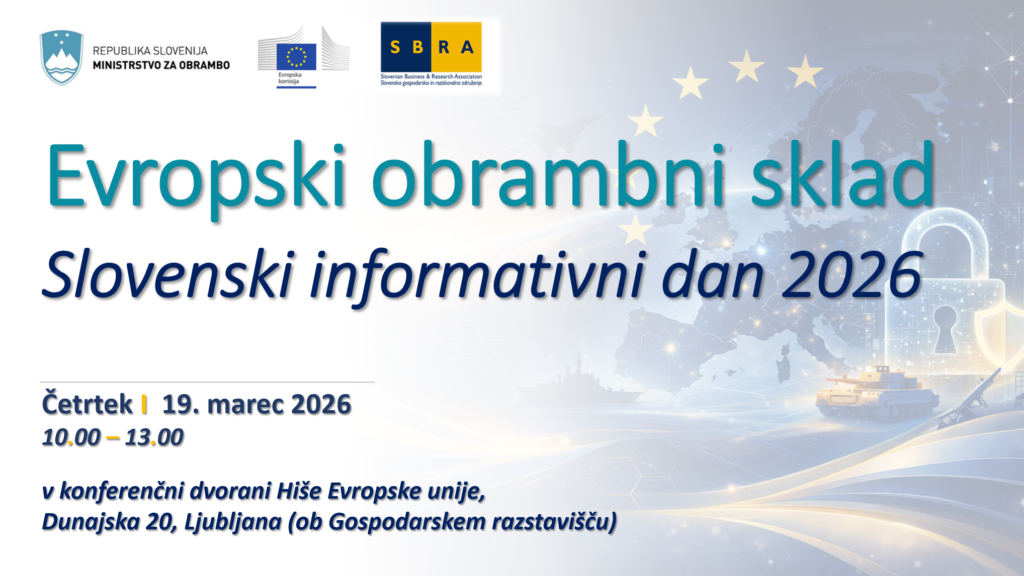 Slovensko gospodarsko in raziskovalno združenje iz Bruslja (SBRA) v sodelovanju z Ministrstvom za obrambo (MORS) napoveduje osrednji dogodek za vsa podjetja in raziskovalne institucije, ki želijo vstopiti v evropsko obrambno industrijo.